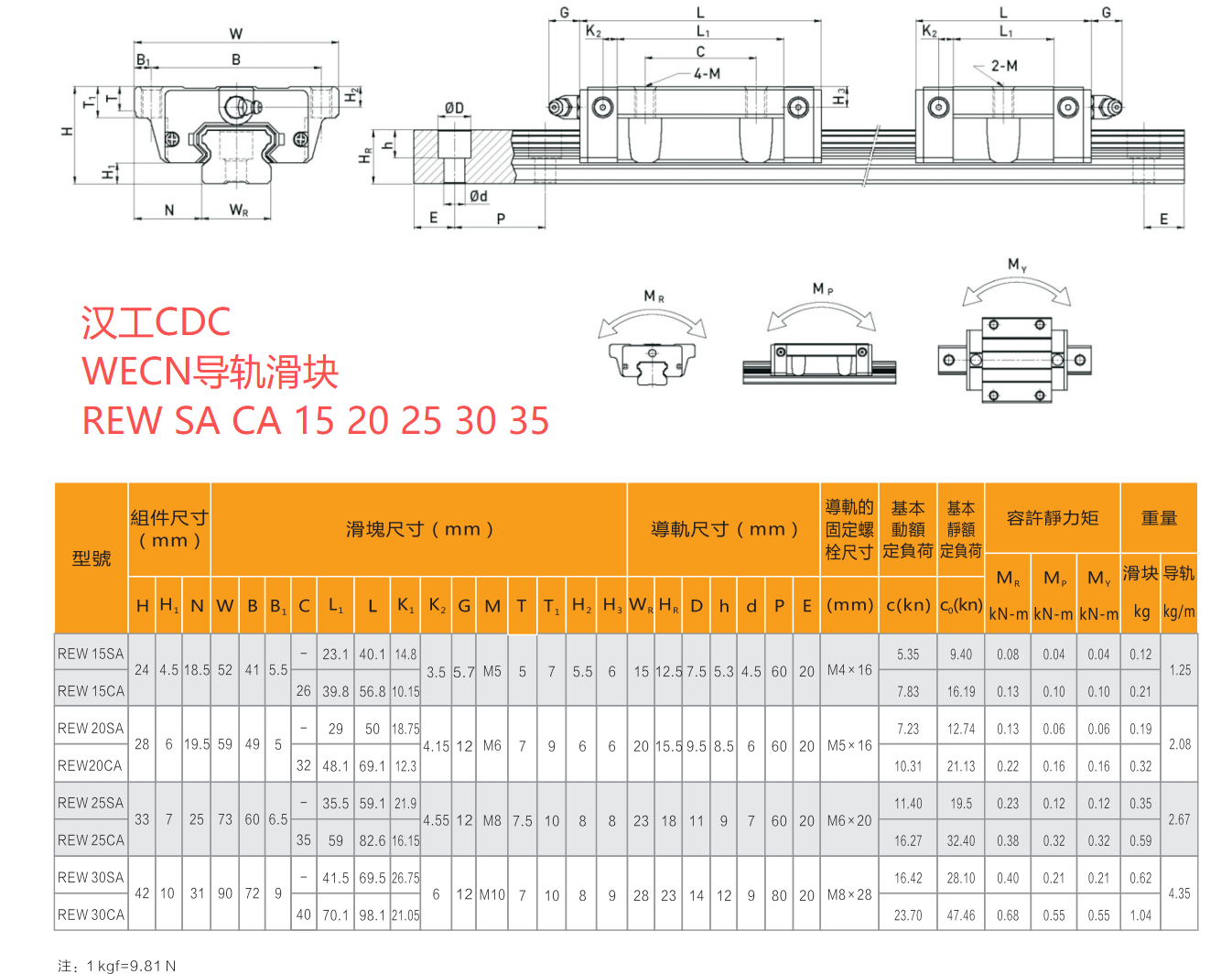 汉工WECN滑块导轨RE系列尺寸图