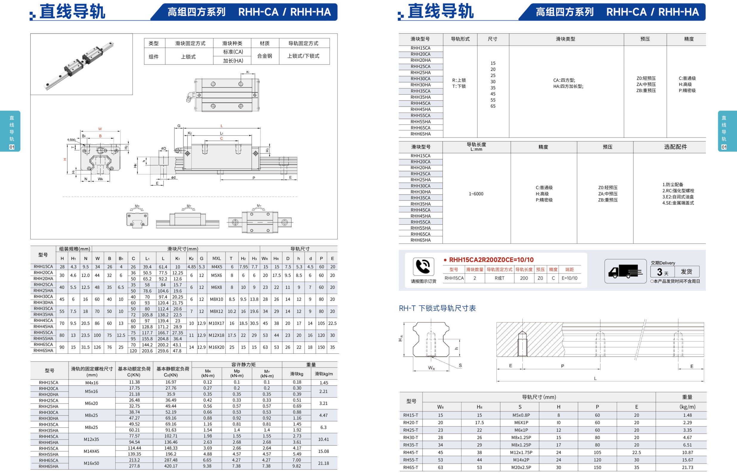 RHH-HA/CA15/20/25/30/35/45/55/65系列滑块导轨