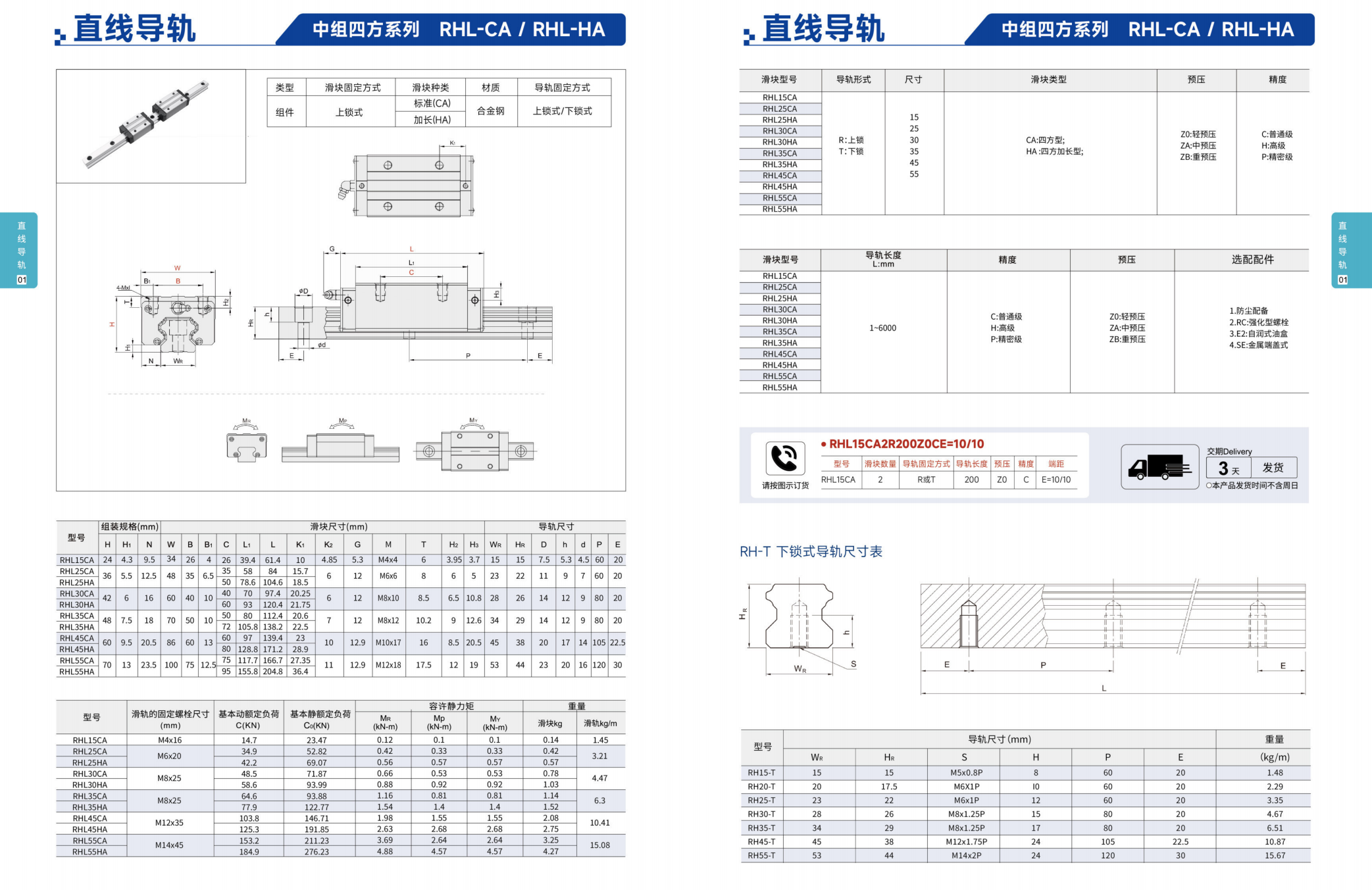 RHL-HA/CA15/20/25/30/35/45/55系列滑块导轨