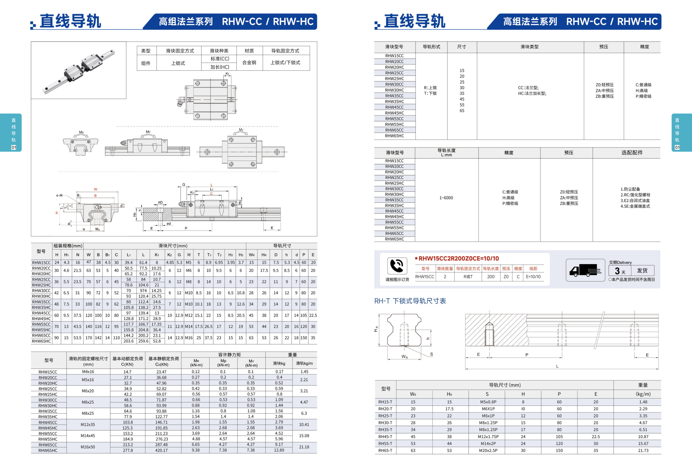 RHW-HC/CC/15/20/25/30/35/45/55/65系列滑块导轨