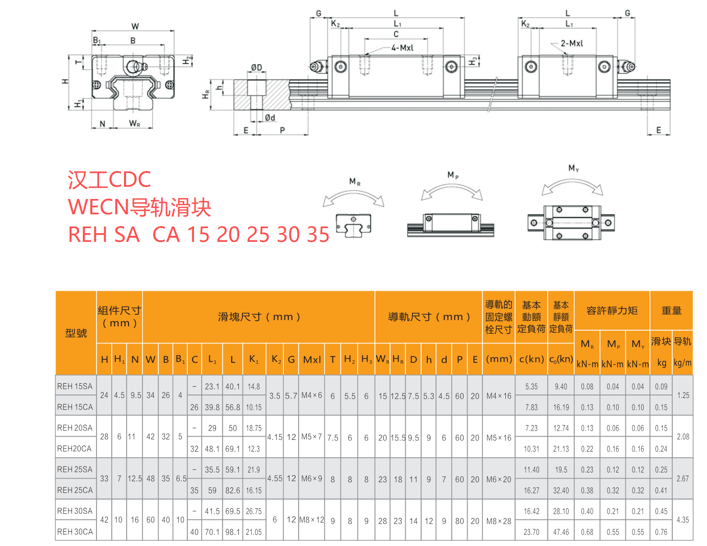 汉工WECN滑块导轨RE系列尺寸图